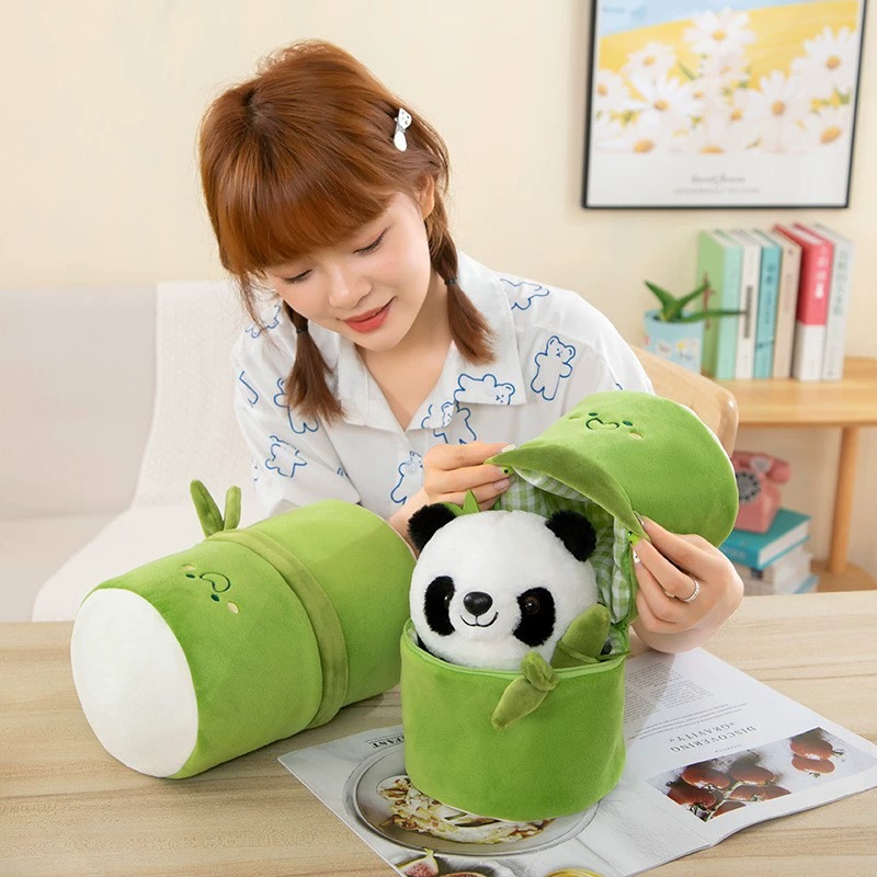 Panda Plush Toy Holding Bamboo – Bamboo Tube Packaging Stuffed Animal Pillow